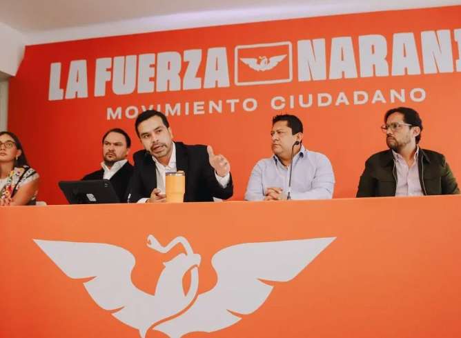 Acompañado de Sofía Castro Guerrero, secretaria de organización; Augusto López Delgado, secretario general de acuerdos; Luis Carbonell de la Hoz, coordinador estatal de MC en Veracruz y de Mariano Romero, excandidato a la alcaldía de Papantla; Álvarez Máynez defendió a José Manuel del Río Virgen y Gregorio Gómez, afirmando que fueron perseguidos políticos y nunca fueron postulados como candidatos en este proceso.
