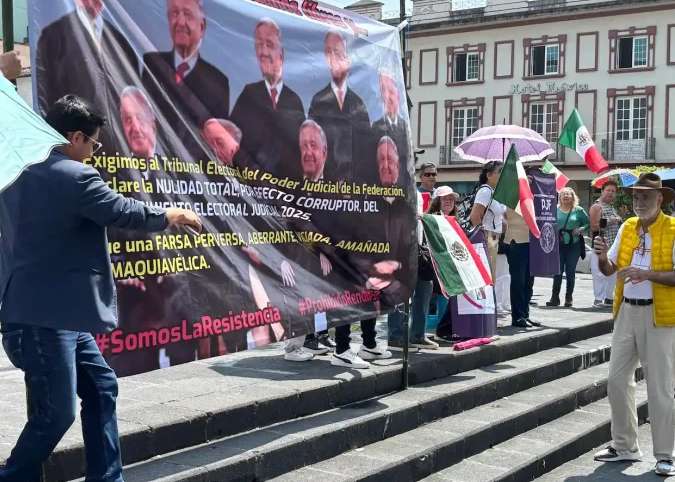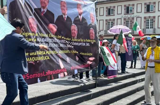 La mañana de este domingo, ciudadanos se manifestaron en plaza Lerdo para solicitar al Tribunal Electoral del Poder Judicial de la Federación (TEPJF) que anule la elección del Poder Judicial.
