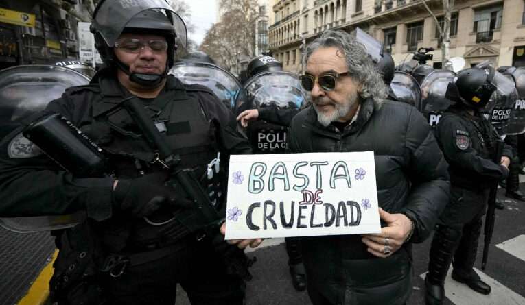 Una nueva y brutal represión contra la tradicional marcha de los jubilados de los miércoles, acompañados por trabajadores de la salud, docentes universitarios y Abuelas de Plaza de Mayo, entre otros, dejó 25 detenidos, decenas de lesionados, entre ellos reporteros gráficos, en una imagen que unida a la de este martes contra los discapacitados y sus familiares evidenció la extrema violencia que aplica contra los sectores más vulnerables el gobierno del ultraderechista presidente Javier Milei.