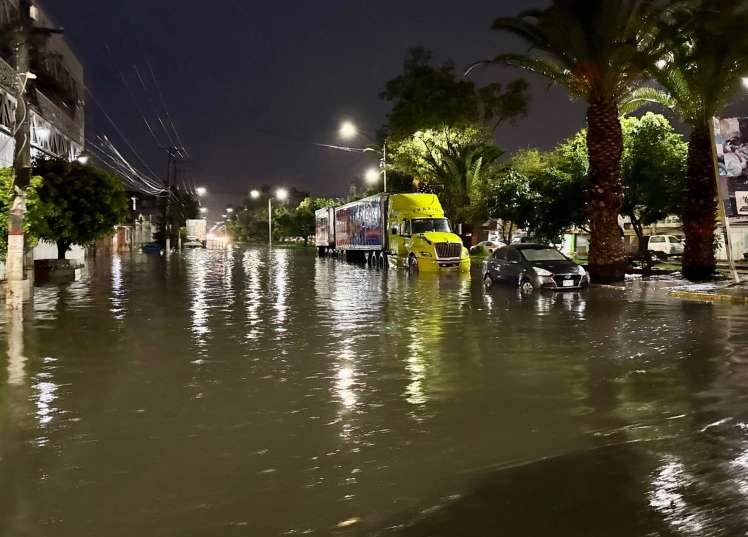En Nezahualcóyotl, en la llamada zona cero, donde confluyen las avenidas Vicente Villada y Pantitlán, el nivel del agua llegó al límite del nivel de banqueta, lo que obligó al cierre de negocios en este importante crucero.