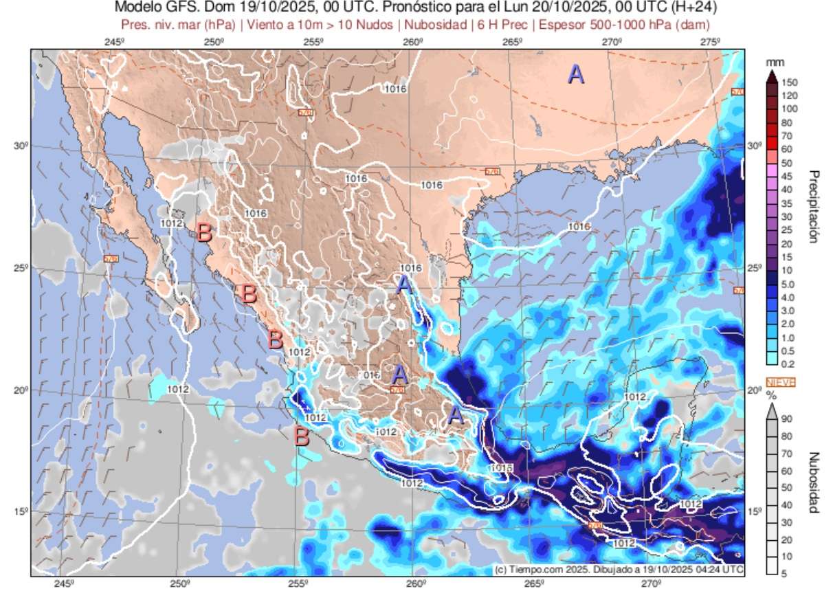 Tuxpan Ver., 19 de octubre de 2025. – A partir de hoy domingo se esperan lluvias en Tuxpan y la región, por lo que el Gobierno de Tuxpan y Protección Civil recomiendan estar atentos.