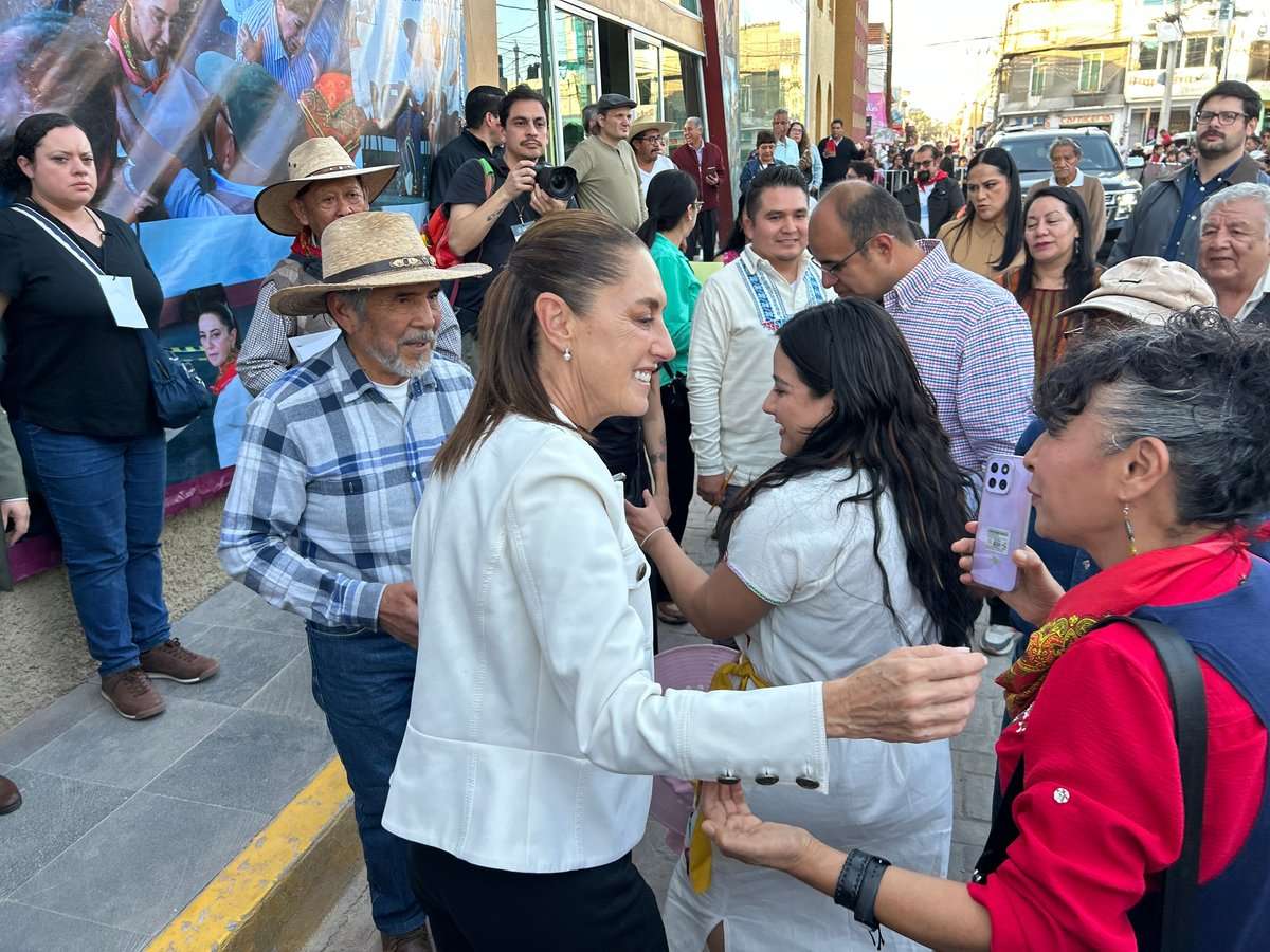 La tarde de este jueves, Sheinbaum Pardo arribó a Atenco acompañada por la gobernadora del estado de México, Delfina Gómez Álvarez, donde fue recibida por los integrantes del FPDT, encabezados por Ignacio del Valle, Marìa Trinidad Ramírez y Jesús Adán Espinosa; ademàs del alcalde, César del Valle Ramírez.
