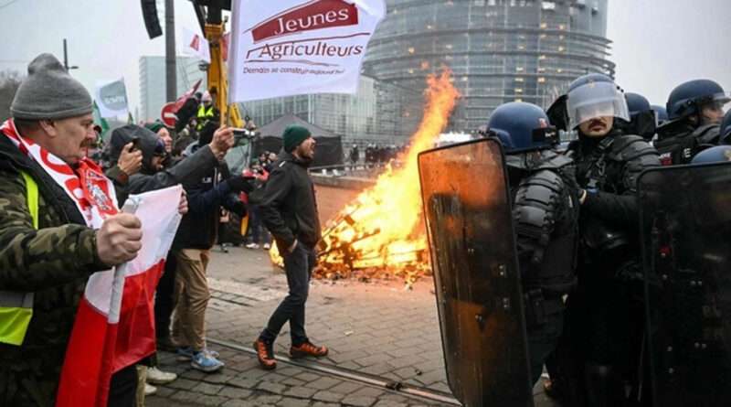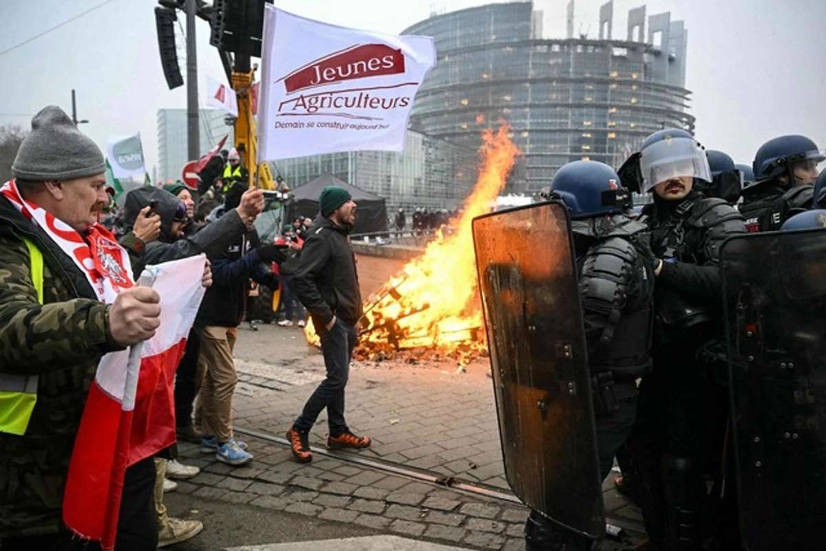 Agricultores franceses, italianos, belgas e incluso polacos se manifestaron a varios cientos de metros de su sede en Estrasburgo, en el noreste de Francia. La protesta congregó más de 5 mil 500 personas, según la policía.