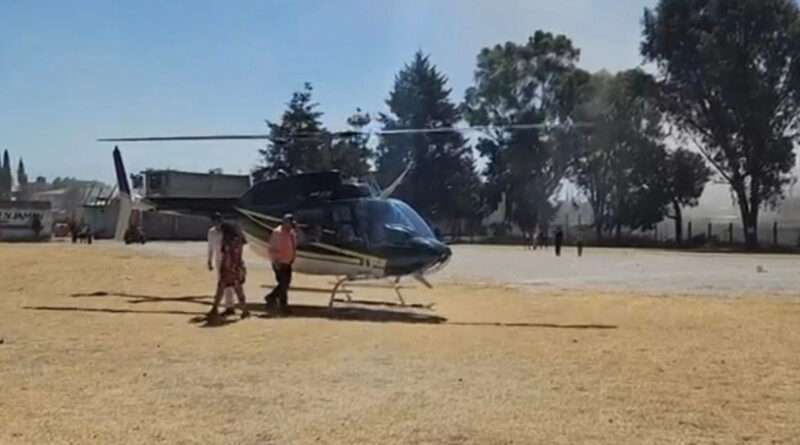 Edil de Chiconcuac usa helicóptero para arribar al Carnaval de Mujeres de San Pablito