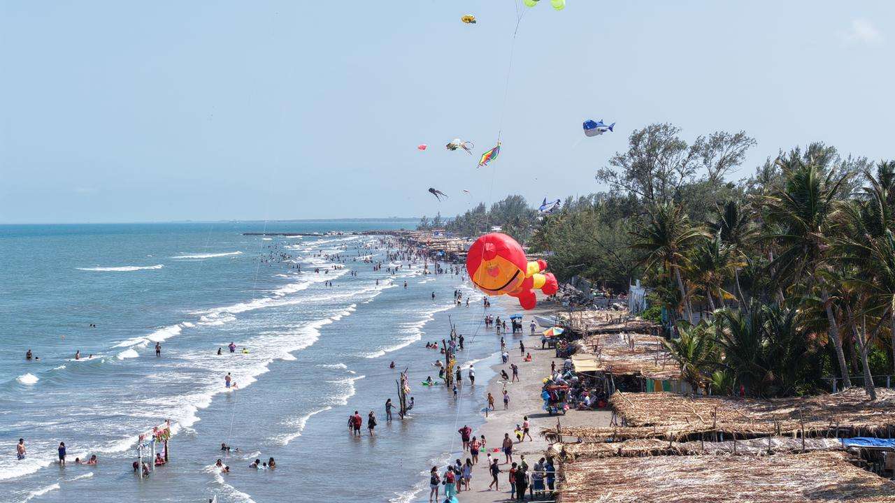 Desde las primeras horas del día se observa la llegada de grupos familiares, que comparten alimentos, practican actividades recreativas como voleibol y disfrutan del mar en un ambiente ordenado y seguro.