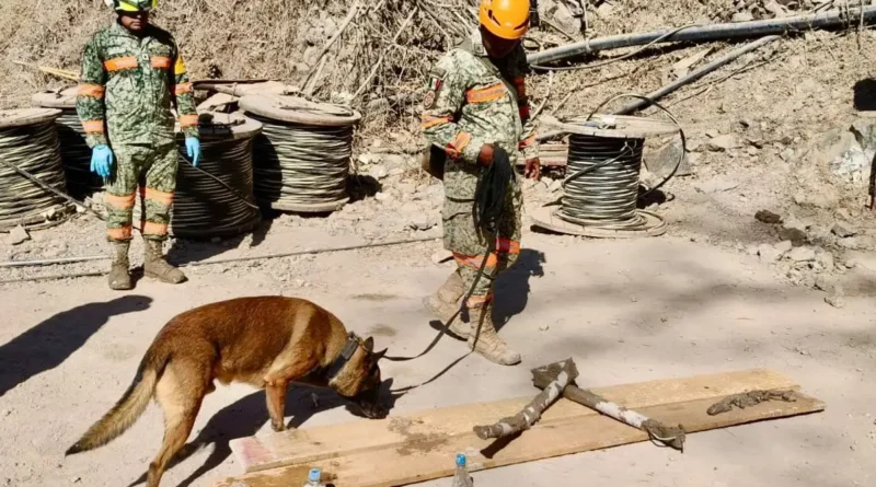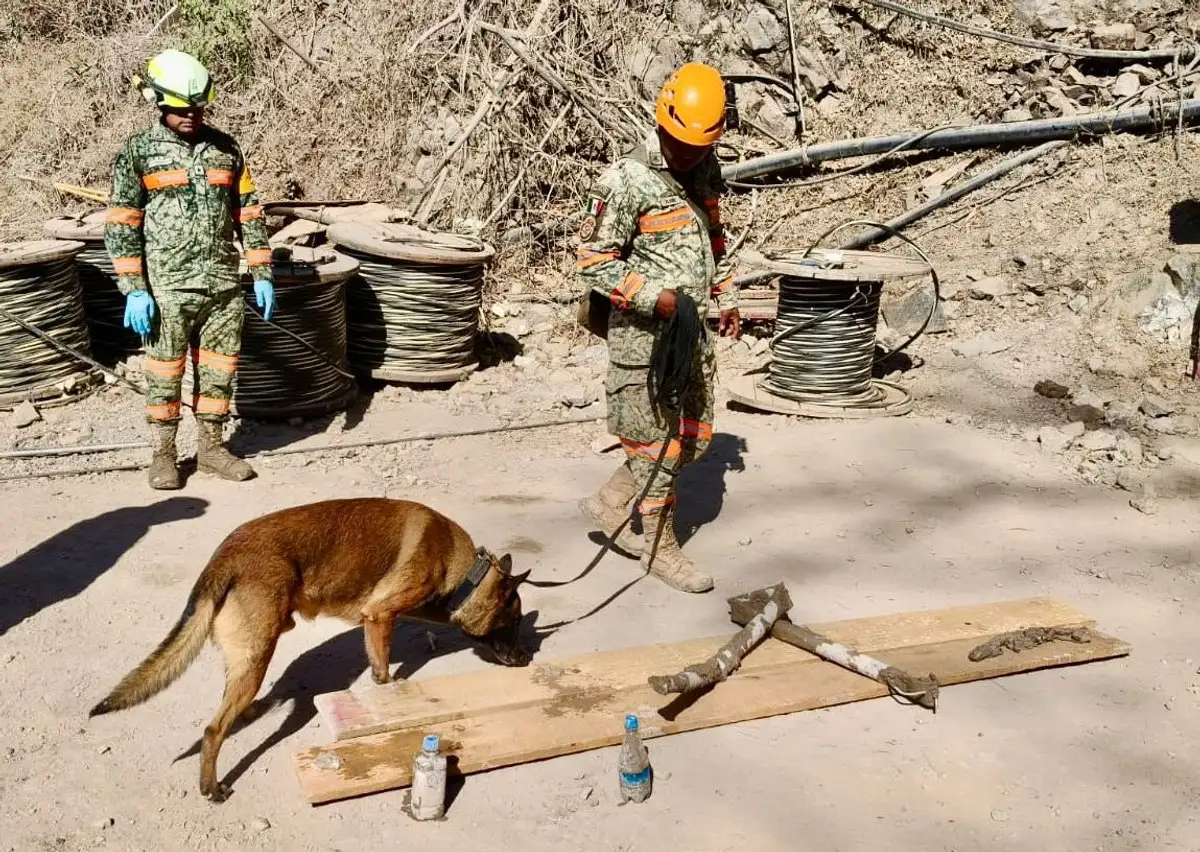 La dependencia reportó que paralelamente se realizan recorridos de verificación, toma de muestras y revisión de material con apoyo de binomios caninos, para encontrar pistas del minero y fortalecer la evaluación en el yacimiento.