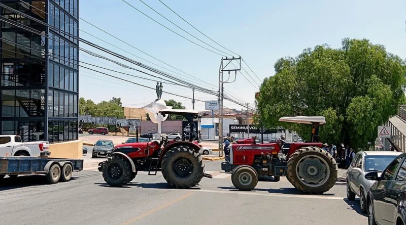Los campesinos bloquearon con tractores la avenida Universidad, a la altura del edificio donde se ubica la Secretaría de Gobernación y la Secretaría de Relaciones Exteriores, y anunciaron el cierre por tiempo indefinido de esas dependencias.